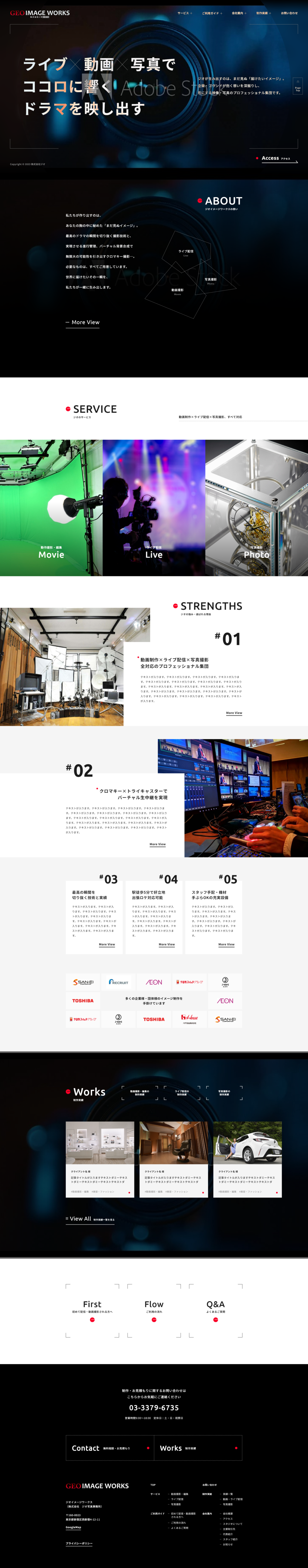 ジオ様は、テレビ番組、CM、映画、配信コンテンツなど、幅広い分野で映像制作・撮影を手掛けられている写真事務所です。